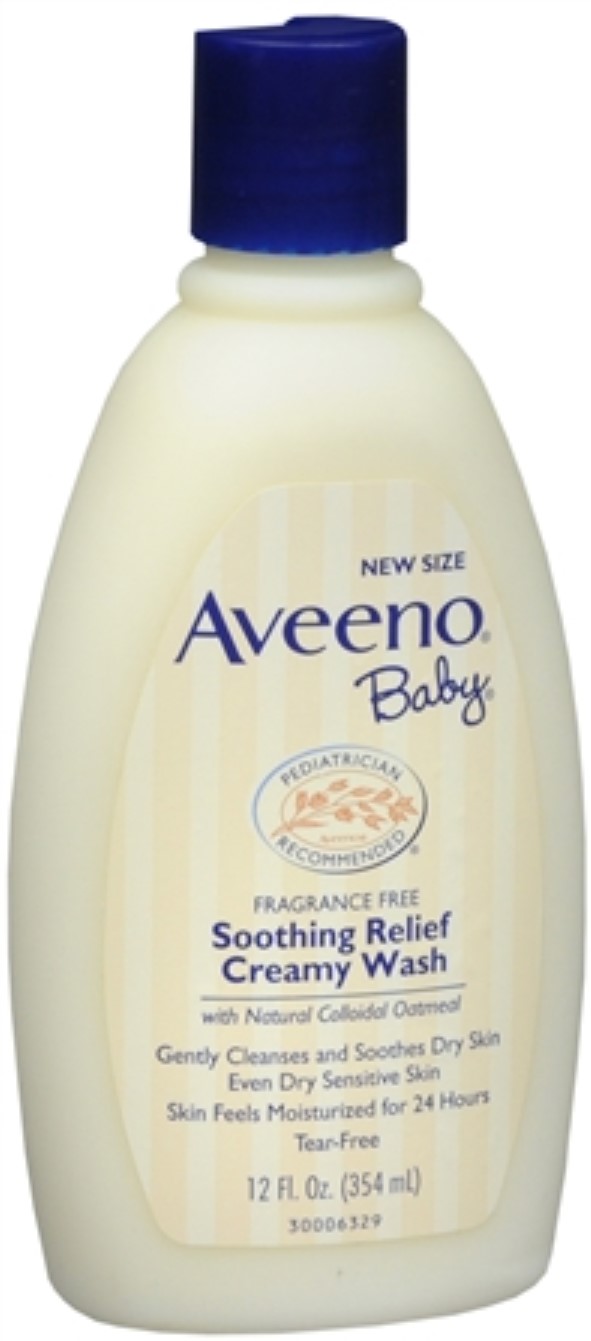 The AVEENO brand has been dermatologist recommended for nearly sixty years. Active Ingredients: Water; Cocamidopropyl Betaine; Glycerin; PEG-80 Sorbitan Laurate; Sodium Trideceth Sulfate; Acrylates Copolymer; Avena Sativa (Oat) Kernel Flour; Sodium Benzoate; Styrene/Acrylates Copolymer; Mineral Oil; Polyquaternium-7; Tetrasodium EDTA; PEG-45M; Benzaldehyde. May Also Contain: Sodium Hydroxide; Citric Acid Uses: AVEENO Baby Soothing Relief Creamy Wash is specially formulated with natural colloidal oatmeal and rich emollients blended into a creamy wash that gently cleanses to soothe and relieve dry skin, even dry skin from eczema, when used in a daily routine with AVEENO Baby Soothing Relief Moisture Cream. This tear-free wash leaves skin feeling moisturized for 24 hours, so baby’s skin looks and feels healthier. Fragrance free and hypoallergenic, it’s even gentle enough for sensitive baby skin.